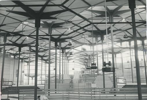 Una cúpula esférica y escalonada de hormigón, apoyada sobre ligeras vigas semiocultas, resuelve el espacio del auditorio del Palacio de Congresos en un prodigio de luz e ingravidez.