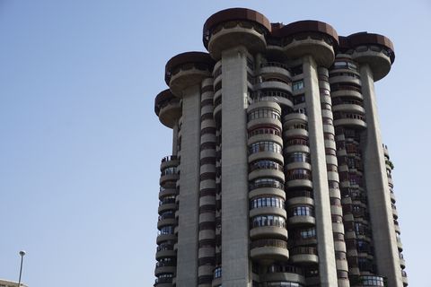Considerado por muchos el símbolo de la arquitectura española del siglo XX. Edificio de viviendas inspirado por Le Corbusier y la torre Price de Frank Lloyd Wright. Un rascacielos que parece crecer orgánicamente, como un árbol de cemento.