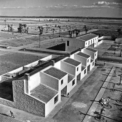 José Luis Fernández del Amo dirige, como arquitecto urbanista, una de las operaciones sociales y económicas más importantes de la década de 1960: la repoblación del medio natural a través de nuevos asentamientos rurales. Nacen así los poblados de colonización de Cañada del Agra (Albacete), Villalba de Calatrava (Ciudad Real), La Vereda (Córdoba) y Vegaviana, Cáceres (en la foto de arriba), trazados urbanos con influencias del organicismo nórdico que toman la arquitectura popular como modelo y emplean la luz como herramienta de diálogo con el paisaje.La aportación de Fernández del Amo no se limita a lo arquitectónico, sino que implica en los proyectos a artistas como Pablo Serrano o Manuel Hernández Mompó.