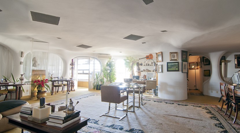 Fragmentando el programa doméstico —un salón y tres estudios— en cuatro contenedores autónomos, el contundente gesto de su apilamiento resuelve la acusada pendiente del solar. Desplazados ligeramente en sentidos alternos para permitir el recorrido de una escalera exterior, los volúmenes se apoyan unos sobre otros, logrando una visión privilegiada de la bahía. Casi como apartamentos independientes, las cuatro cajas repiten un mismo esquema que comprime los servicios en el fondo de una única estancia diáfana y abierta al mar.